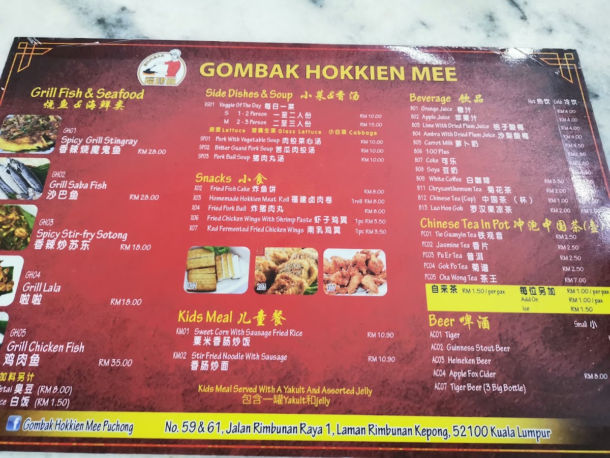 Gombak Hokkien Mee offers a straightforward menu centered around comforting Chinese noodle dishes and familiar local flavors. The focus here is on hearty, satisfying plates that feel at home during casual lunches or late-night dinners. The setting encourages relaxed dining, where sharing simple, flavorful meals with friends or family fits perfectly.